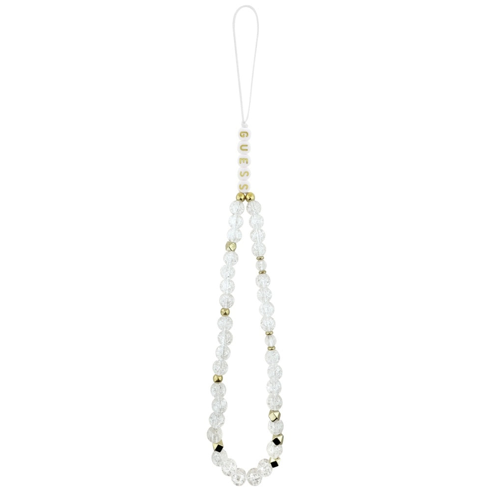 MagSafe Case for Apple iPhone 17 Pro, Guess, IML Flowers Allover Electroplated with Pearl Strap, White