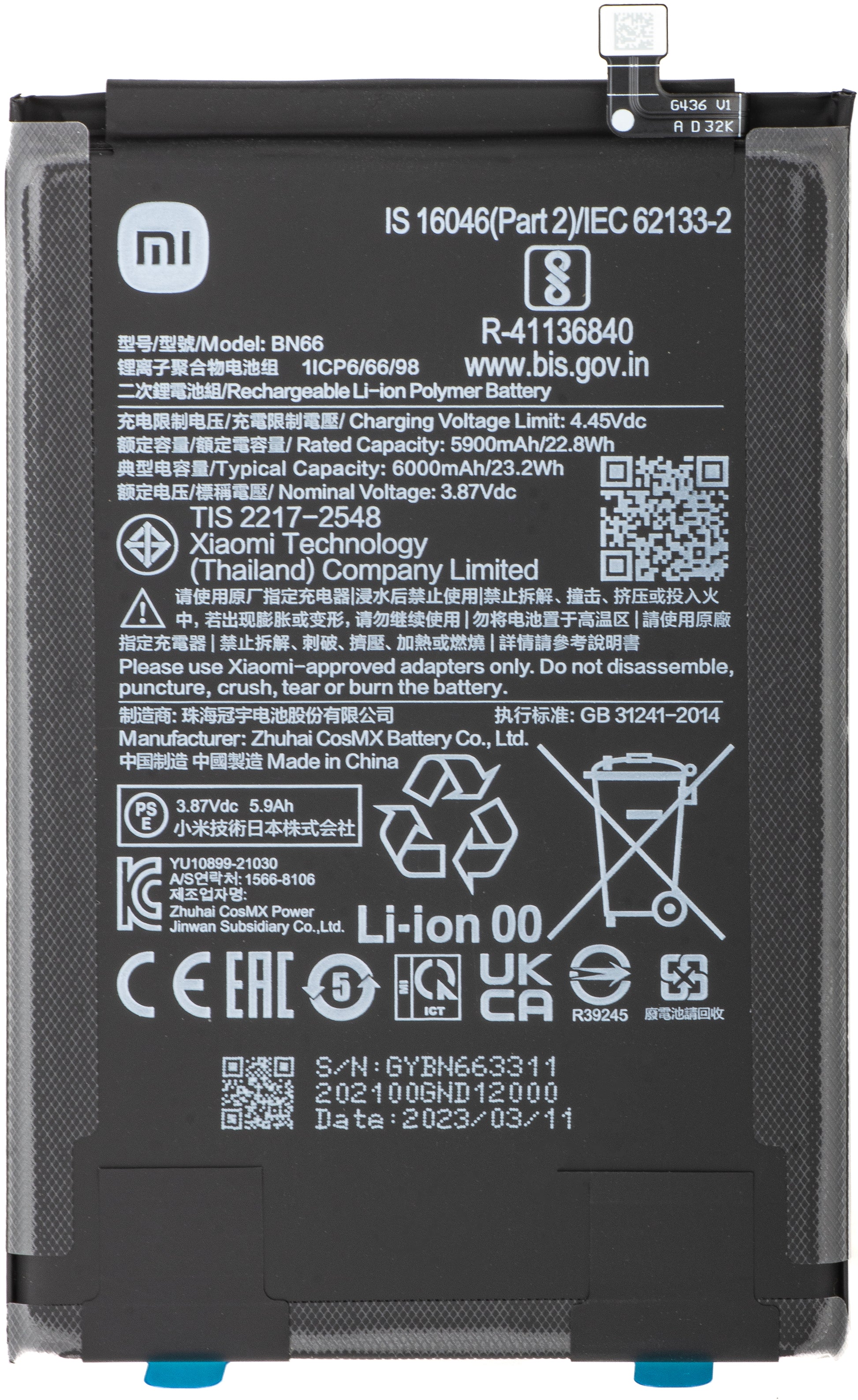 Capacité | 6000mAh |