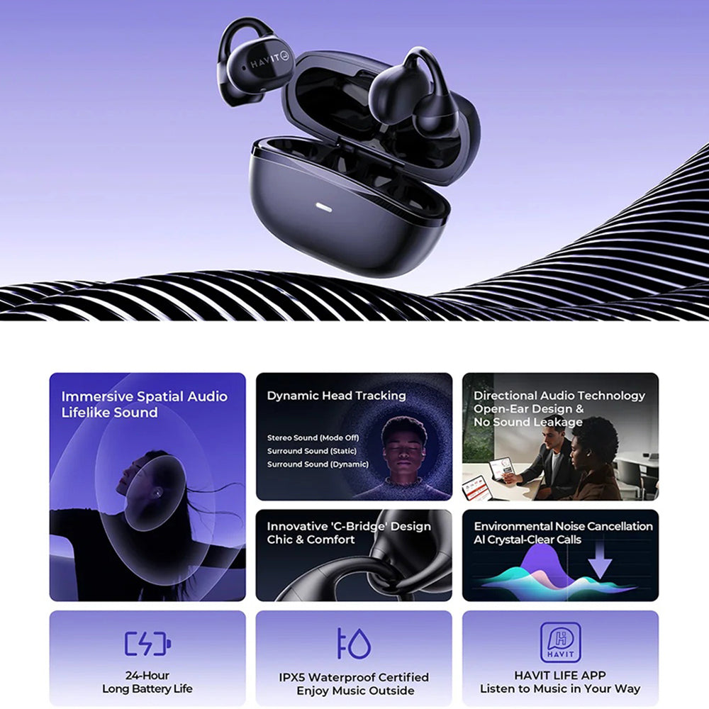 Que vous travailliez, vous entraîniez ou voyagiez, HAVIT OWS916 offre un son de qualité et une liberté de mouvement à tout moment.