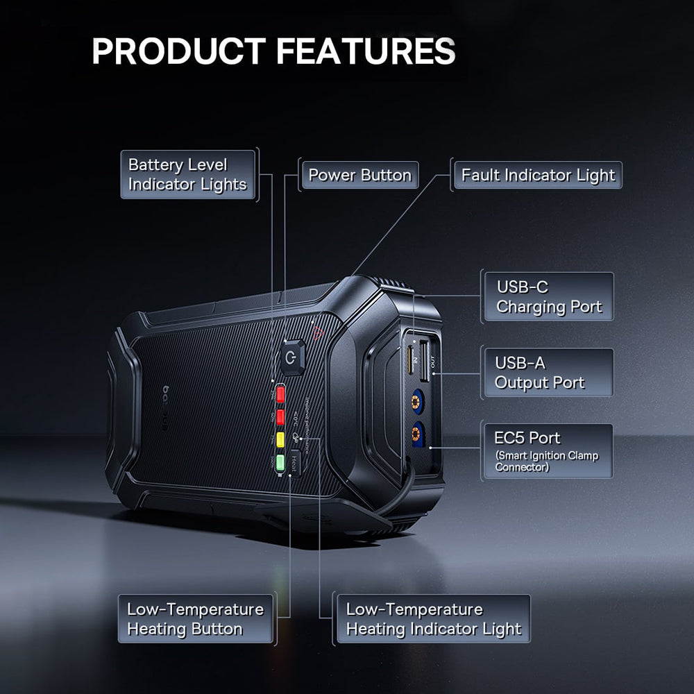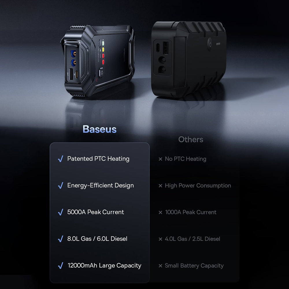 • Baseus ha la soluzione perfetta per te! Questo avviatore portatile ti permette di riavviare rapidamente l'auto in qualsiasi situazione di emergenza. Inoltre, il dispositivo include una torcia LED. Ogni conducente dovrebbe averlo!