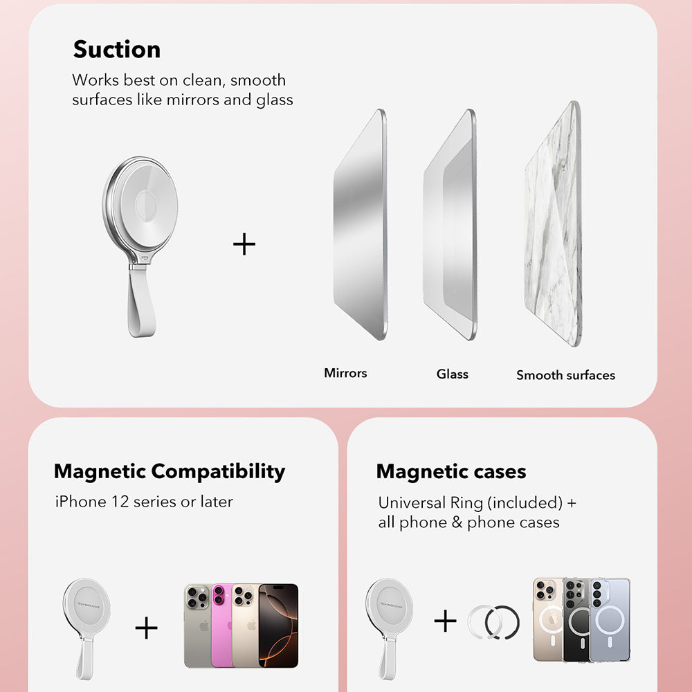 • Verfügt über einen starken Saugnapf, der eine sichere Befestigung auf jeder sauberen und glatten Oberfläche gewährleistet.