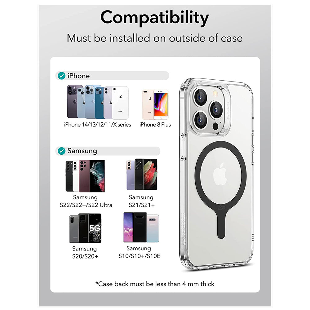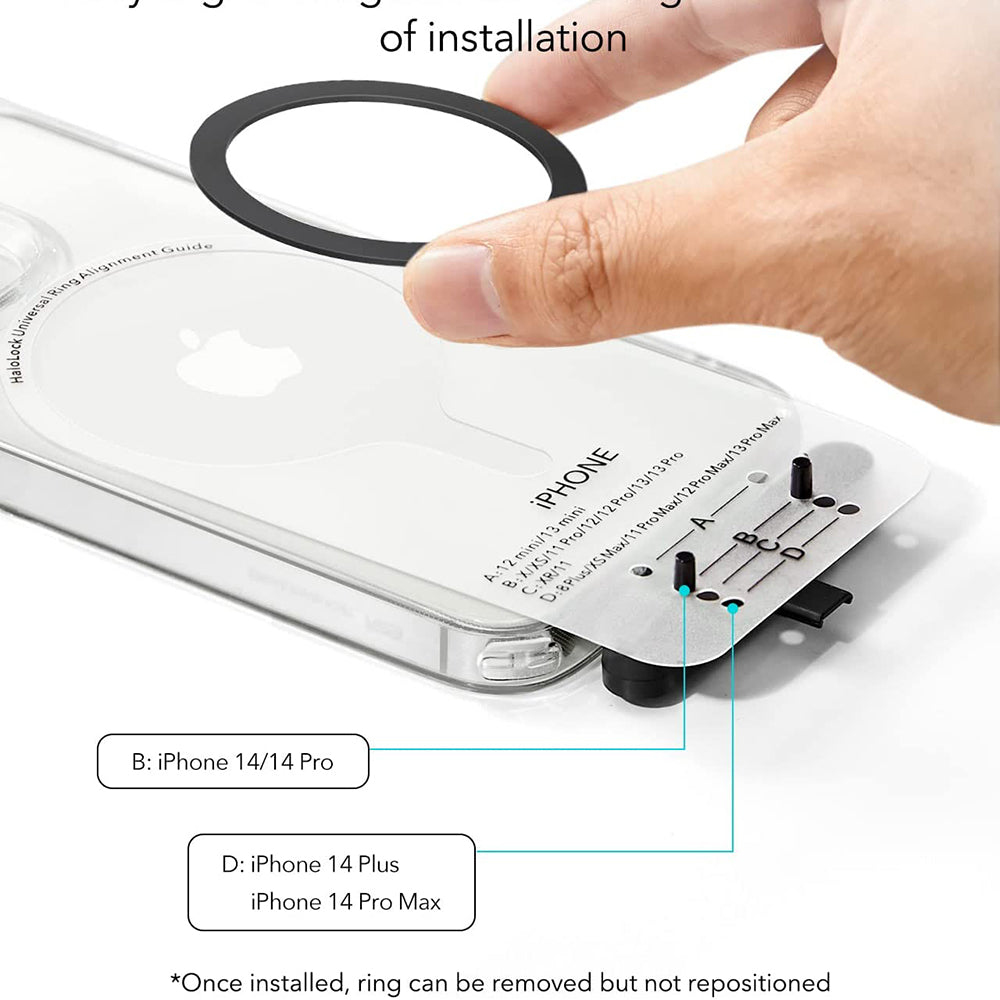 • Das Paket enthält zwei Kits zur Montage des Rings, damit du ihn richtig positionieren kannst. Alles ist so einfach mit dem neuen HaloLock-Adapter von ESR.