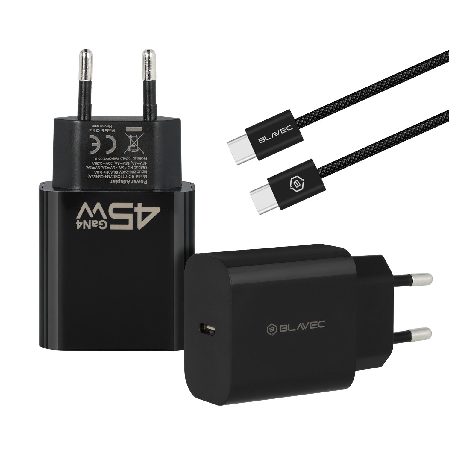 Netzladegerät mit USB-C Kabel Blavec BC-7 - Schwarz